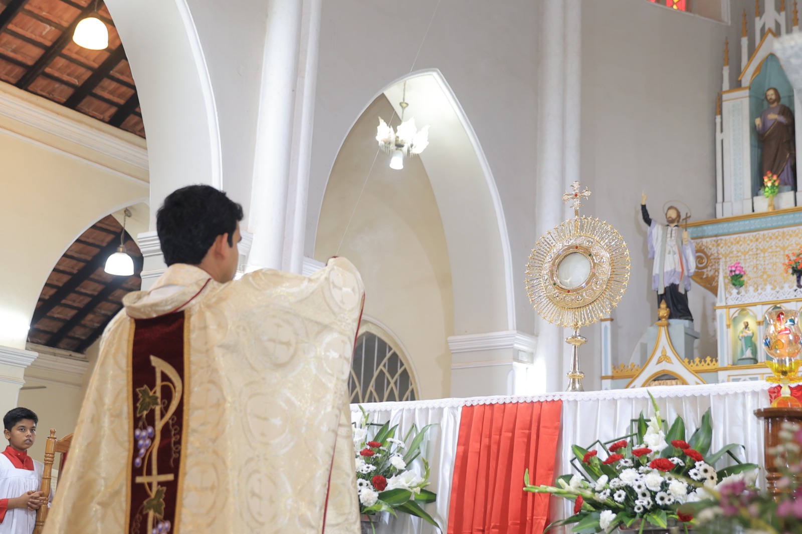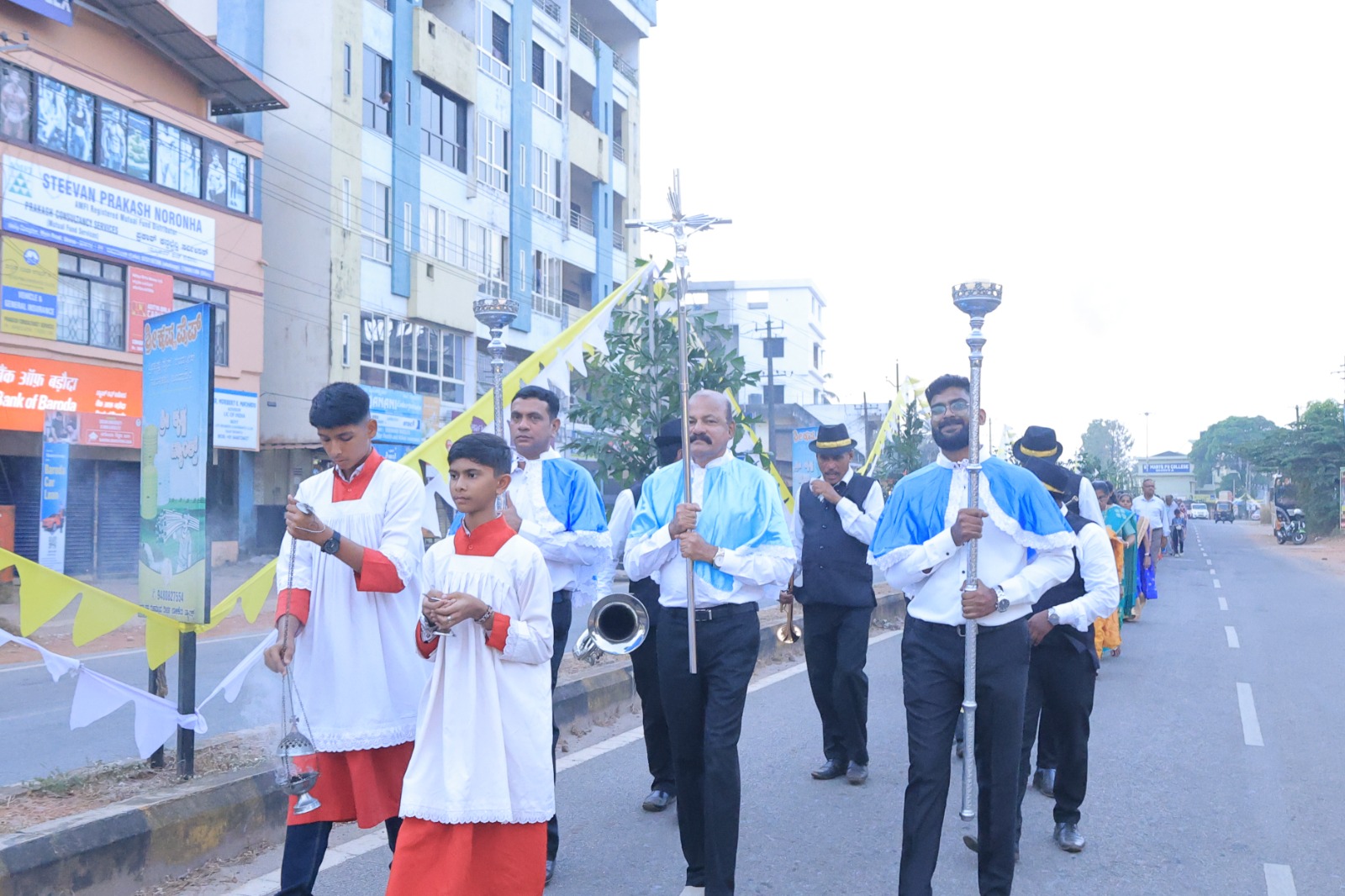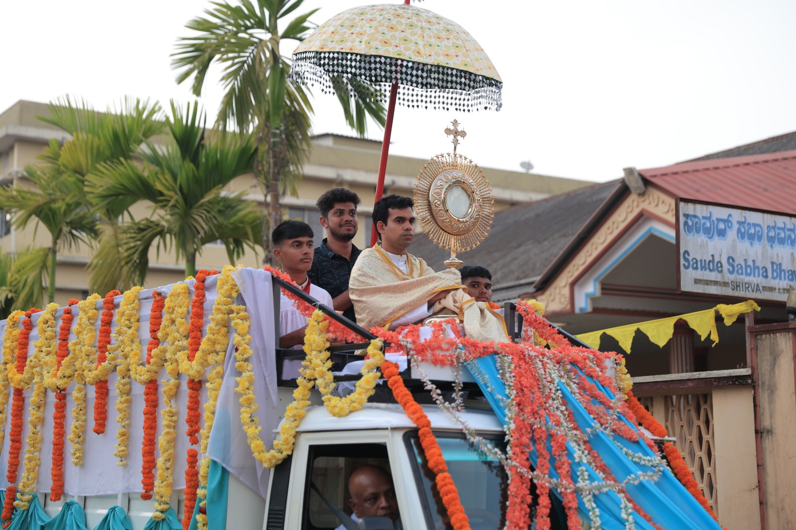 Following the Holy Mass, a reverent procession was held, carrying the Blessed Sacrament from the church premises up to the Shirva Indian Oil petrol bunk and back to the church. The faithful participated prayerfully, witnessing to their devotion and unity. Upon returning to the church, Benediction of the Blessed Sacrament was solemnly imparted, bringing the liturgical celebrations to a grace-filled conclusion.