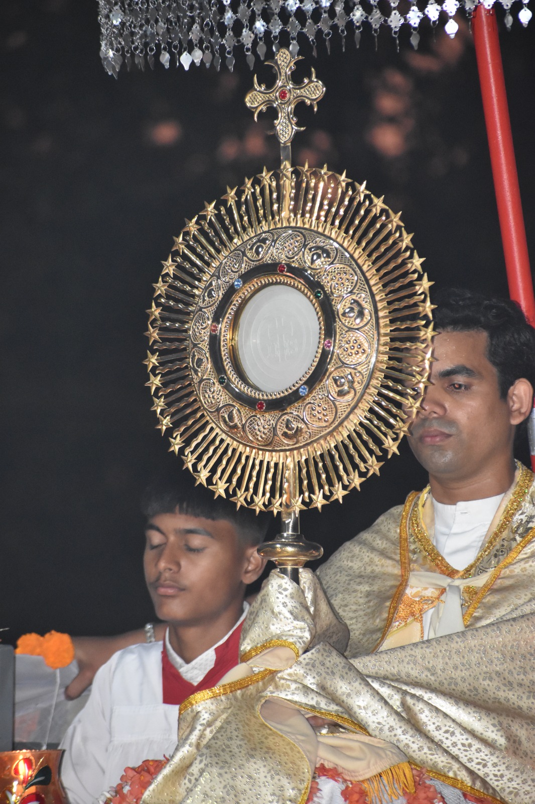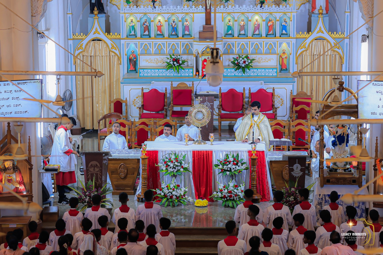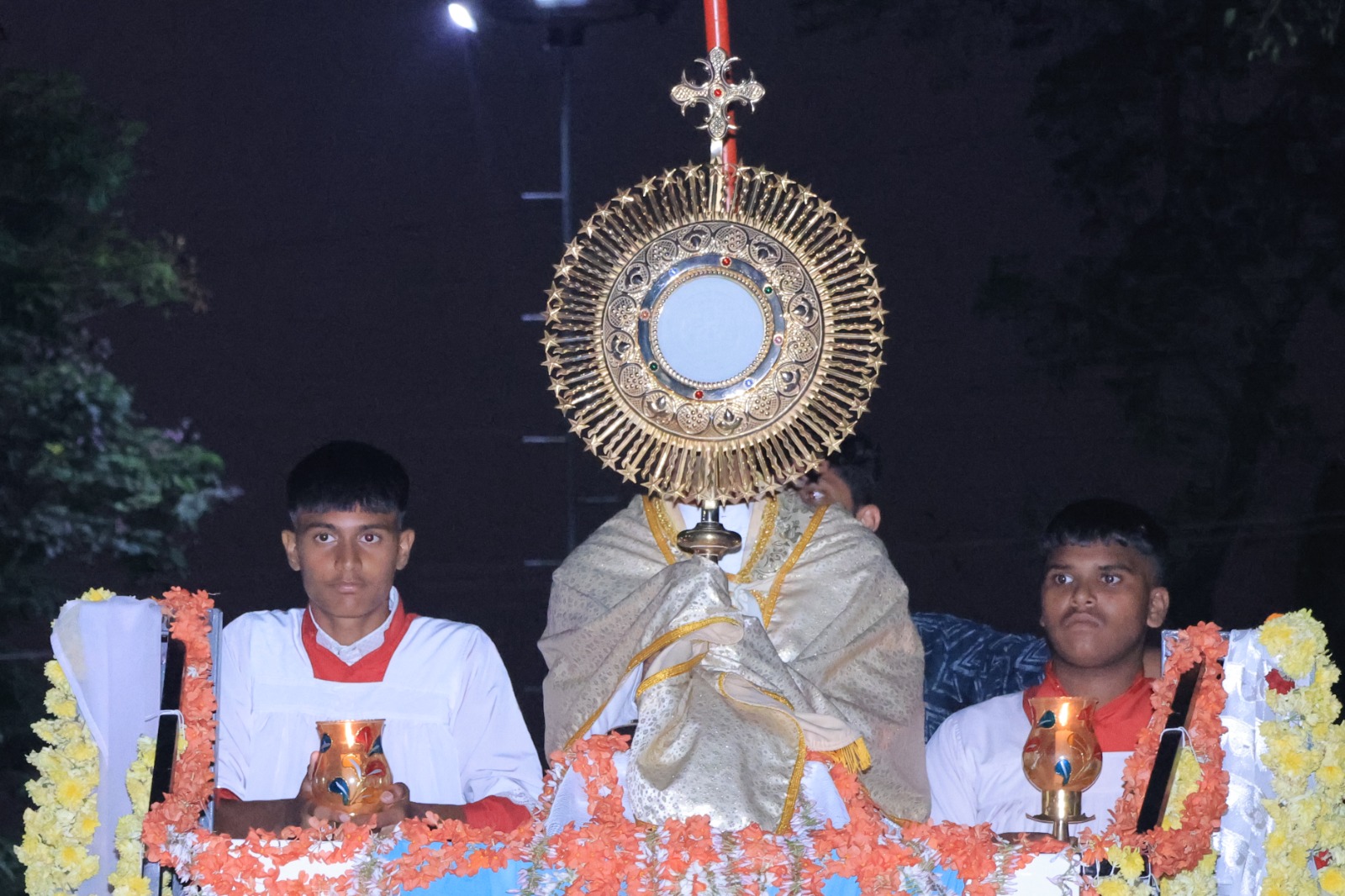 Following the Holy Mass, a reverent procession was held, carrying the Blessed Sacrament from the church premises up to the Shirva Indian Oil petrol bunk and back to the church. The faithful participated prayerfully, witnessing to their devotion and unity. Upon returning to the church, Benediction of the Blessed Sacrament was solemnly imparted, bringing the liturgical celebrations to a grace-filled conclusion.
