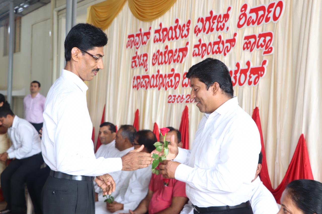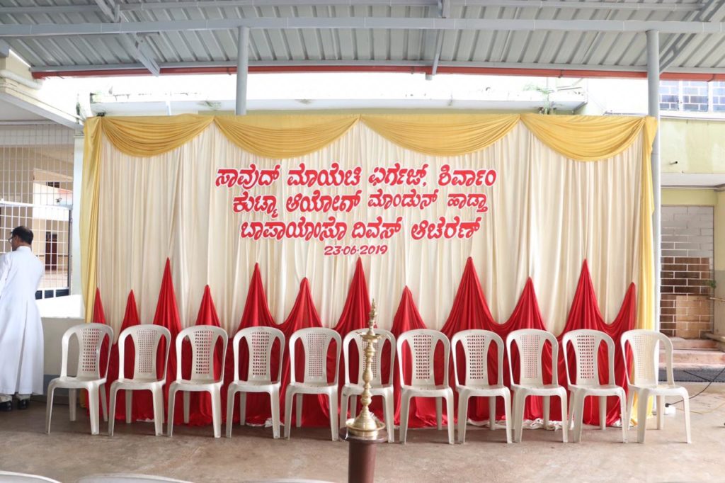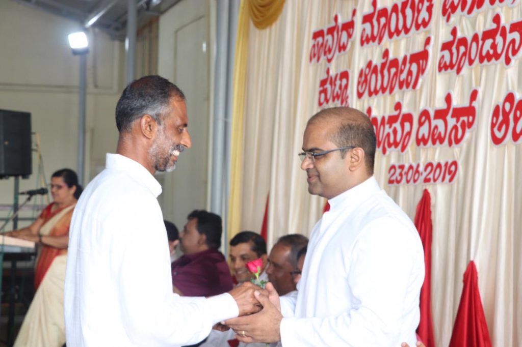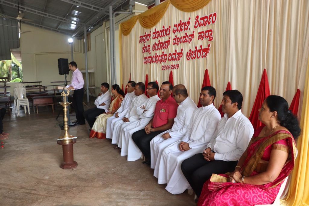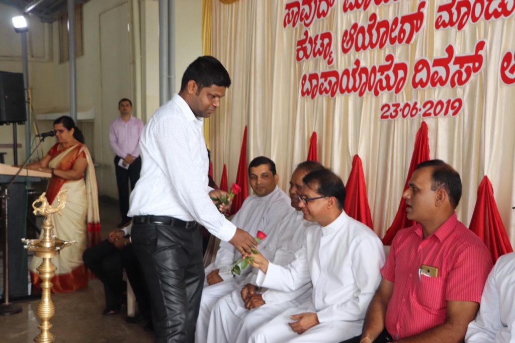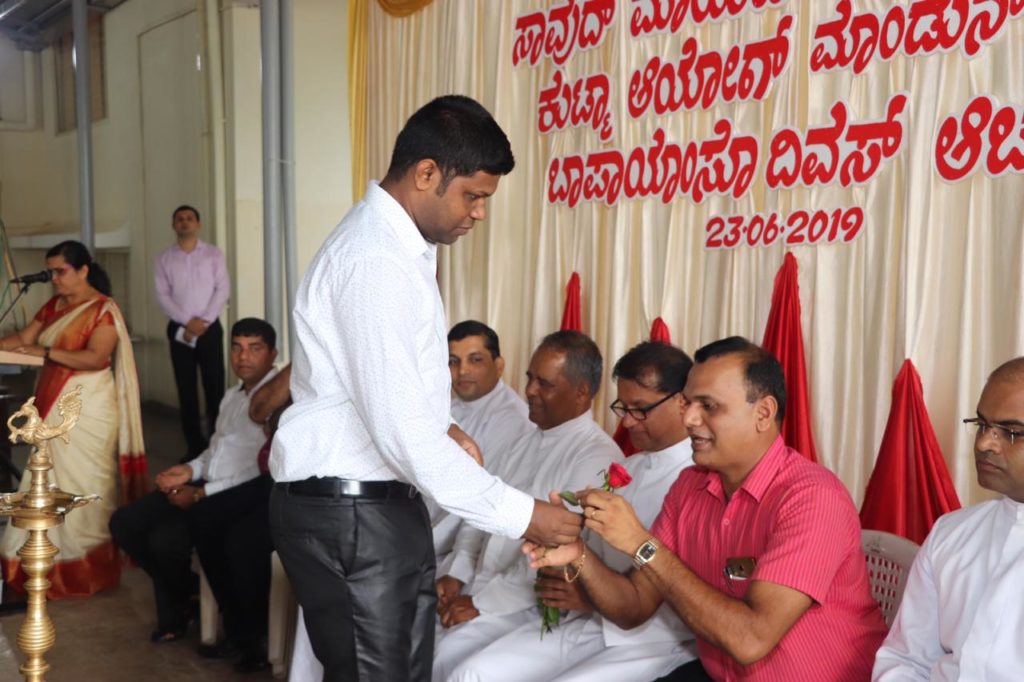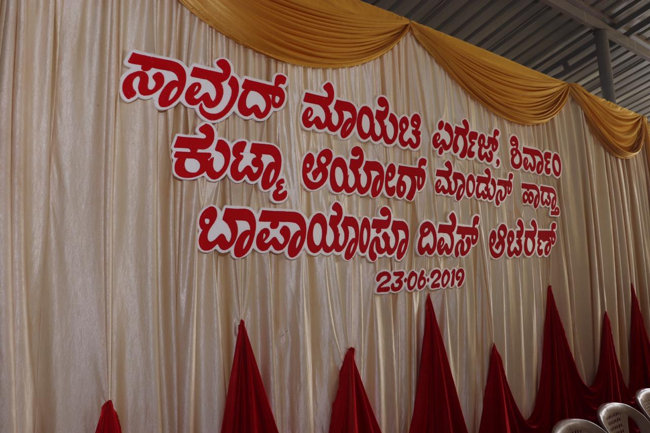 June 23, 2019: Commission for Family of Our Lady of Health Church Shirva organized ‘Fathers Day’ celebration for the first time at Don Bosco CBSE premises. The celebration began with the morning mass with all the liturgy  and choir offered by the Fathers of the parish. Rev. Fr. Baptist Menezes (Rector, Minor Seminary of Udupi Diocese Moodubelle) was the main celebrant, assisted by Rev. Fr. Derick D’Souza (Capuchin Priest) and Rev. Fr. Denis D’Sa. After mass, breakfast was served for more than 200 fathers who participated in this celebration. A formal function was also organized by the Commission for Family. Mr. Leslie Aroza (Diocese Director for Commission for Family) was the chief guest. He shared his experiences on the existing problems faced and role of a father in the family. Fr. Derick D’Souza shared the importance of the word ‘Father’ (In konkani as Bapoi/Pappa) and his responsibility in the family is more than a mother. Fr. Denis D’Sa sang a famous song written and composed by ‘Konkan Kogul Amar Wilfy Rebimbus’… Hya Sovnsaranth Ek Avoi Ek Bapoi.. A skit was played by Mr. Wilson D’Souza (Vice President, PPC), Mr. Lancy, Mr. Melwyn Aranha (18 Commission Coordinator) and Mrs. Pushpa Fernandes during this occasion. Mr. Grynal D’Mello compered the programme, Mrs. Pushpa Fernandes (Animator, Commission for Family) welcomed the gathering and Mrs. Vinitha (Secretary, Commission for Family) proposed the formal vote of thanks. Fr. Ashwin Aranha, Fr. Mahesh D’Souza, Mr. Wilson Rodrigues (member of Zilla Panchayat), Mrs Leena Machado (Secretary, PPC) were also a present during this programme.