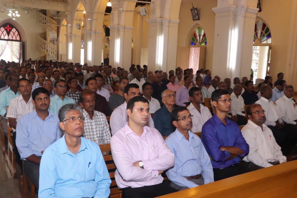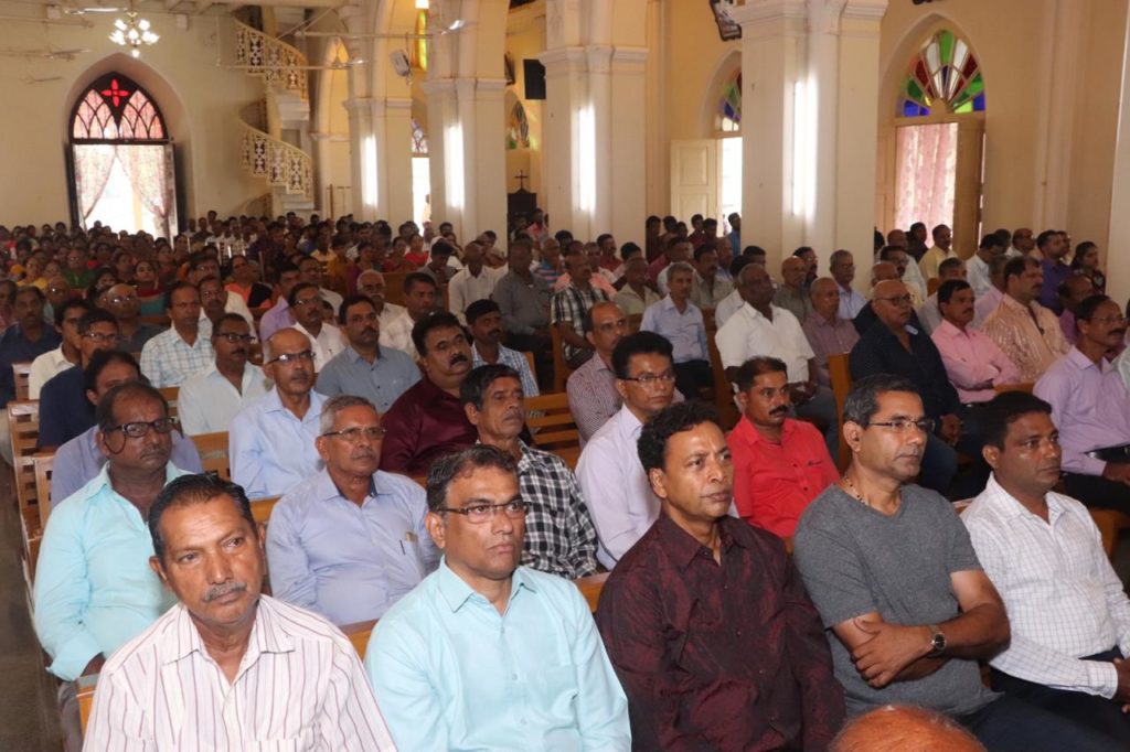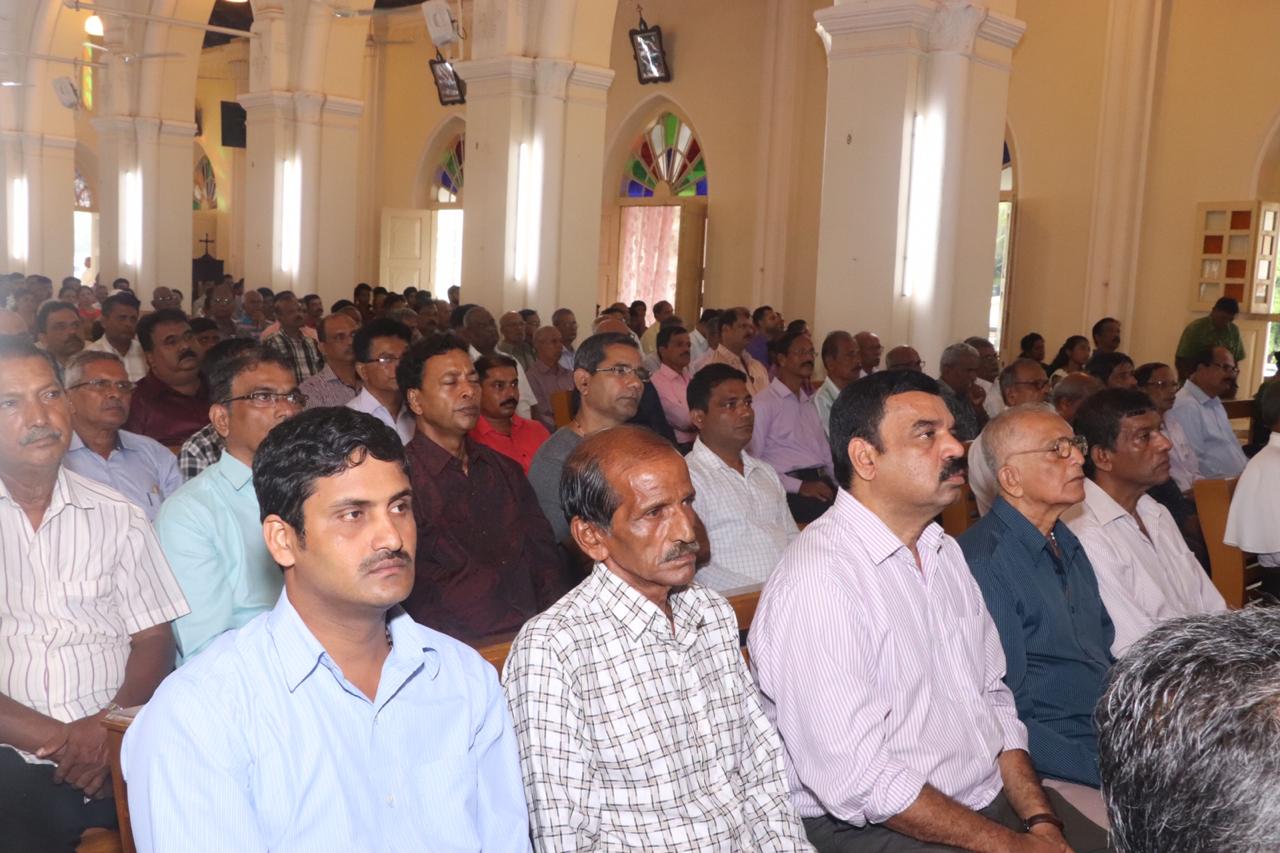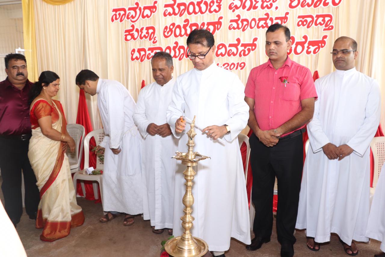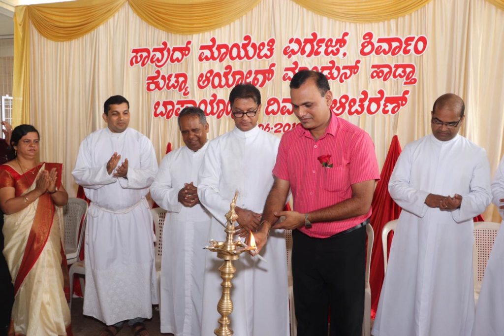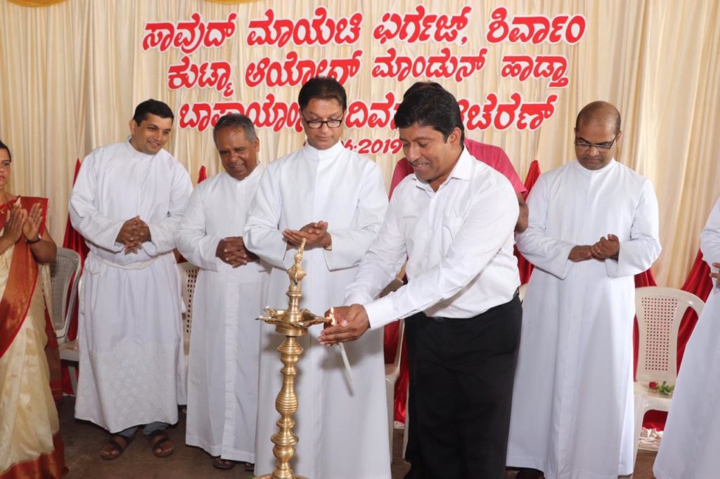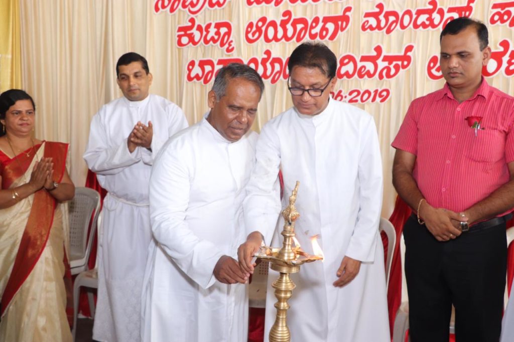 June 23, 2019: Commission for Family of Our Lady of Health Church Shirva organized ‘Fathers Day’ celebration for the first time at Don Bosco CBSE premises. The celebration began with the morning mass with all the liturgy  and choir offered by the Fathers of the parish. Rev. Fr. Baptist Menezes (Rector, Minor Seminary of Udupi Diocese Moodubelle) was the main celebrant, assisted by Rev. Fr. Derick D’Souza (Capuchin Priest) and Rev. Fr. Denis D’Sa. After mass, breakfast was served for more than 200 fathers who participated in this celebration. A formal function was also organized by the Commission for Family. Mr. Leslie Aroza (Diocese Director for Commission for Family) was the chief guest. He shared his experiences on the existing problems faced and role of a father in the family. Fr. Derick D’Souza shared the importance of the word ‘Father’ (In konkani as Bapoi/Pappa) and his responsibility in the family is more than a mother. Fr. Denis D’Sa sang a famous song written and composed by ‘Konkan Kogul Amar Wilfy Rebimbus’… Hya Sovnsaranth Ek Avoi Ek Bapoi.. A skit was played by Mr. Wilson D’Souza (Vice President, PPC), Mr. Lancy, Mr. Melwyn Aranha (18 Commission Coordinator) and Mrs. Pushpa Fernandes during this occasion. Mr. Grynal D’Mello compered the programme, Mrs. Pushpa Fernandes (Animator, Commission for Family) welcomed the gathering and Mrs. Vinitha (Secretary, Commission for Family) proposed the formal vote of thanks. Fr. Ashwin Aranha, Fr. Mahesh D’Souza, Mr. Wilson Rodrigues (member of Zilla Panchayat), Mrs Leena Machado (Secretary, PPC) were also a present during this programme.