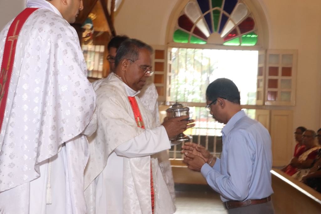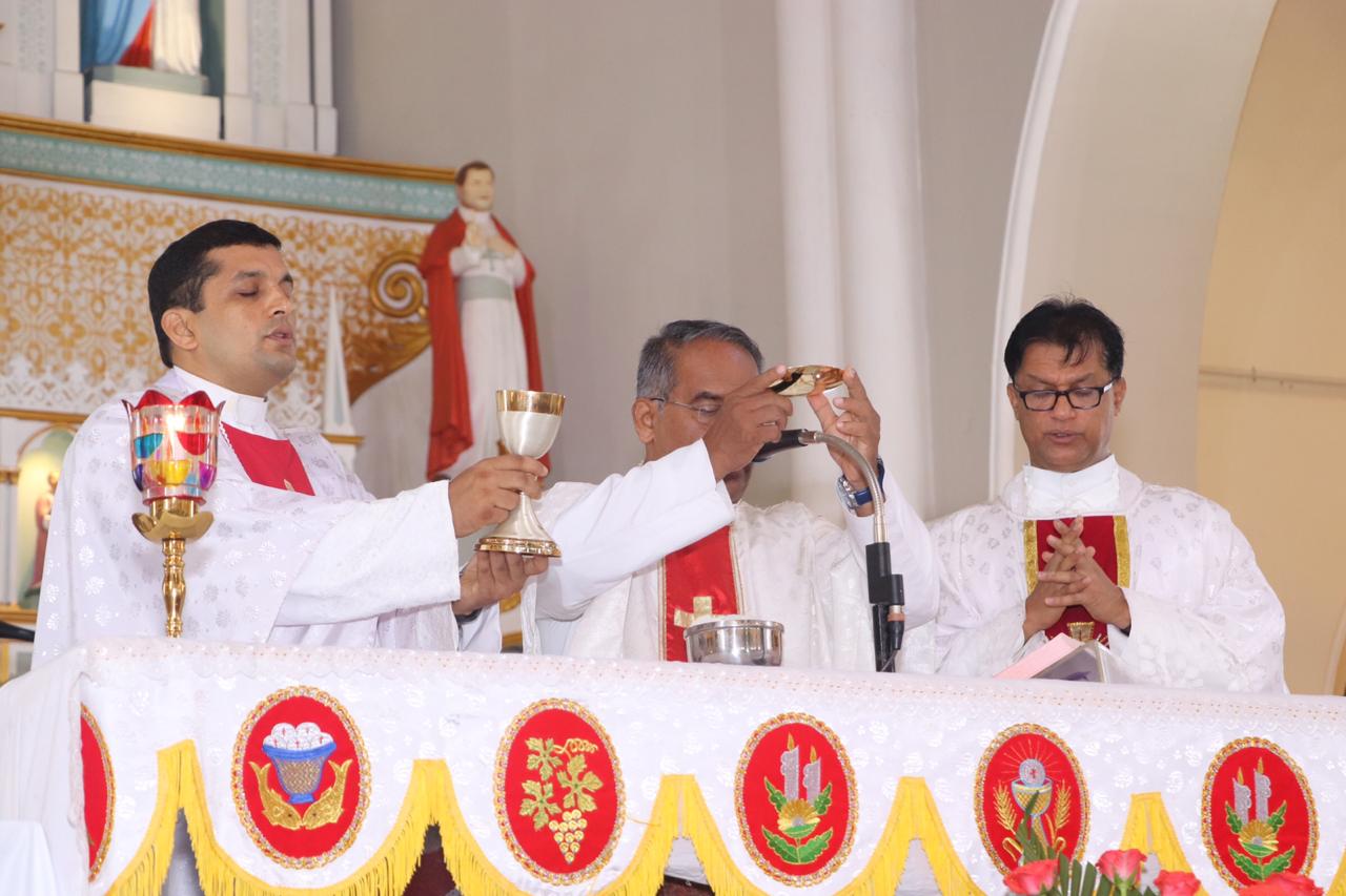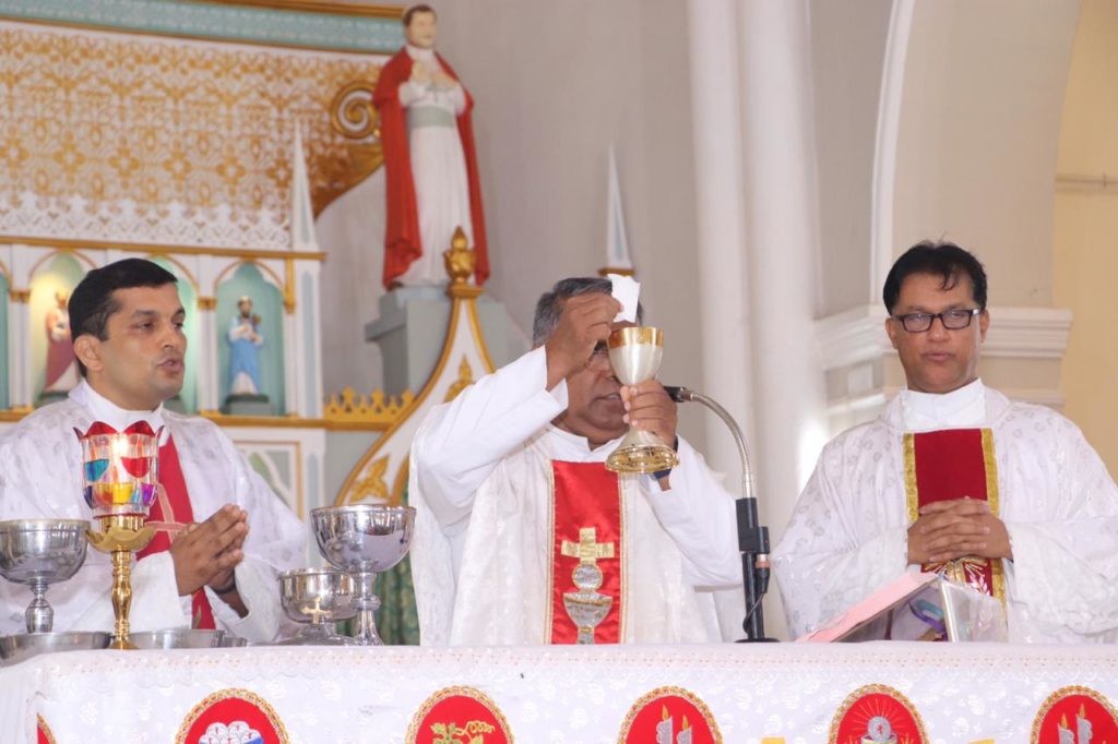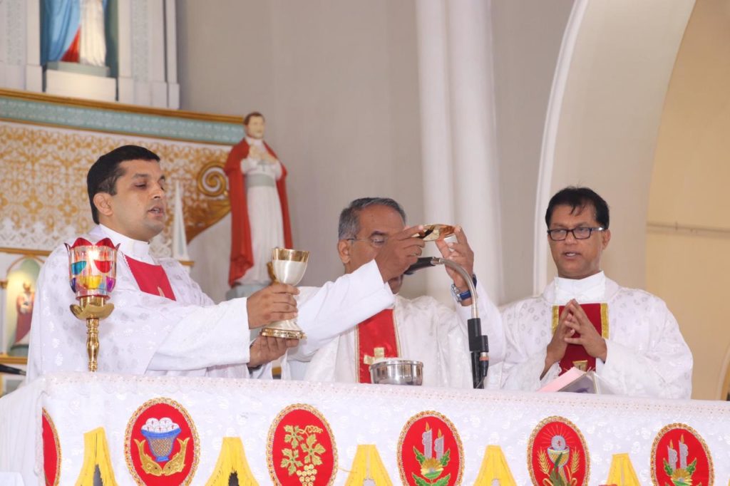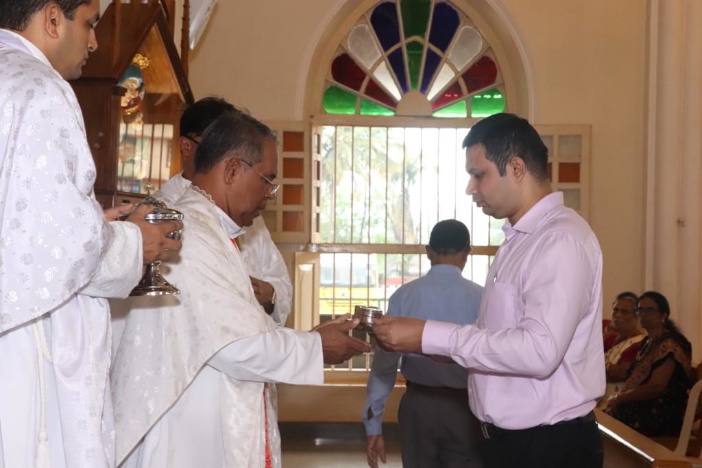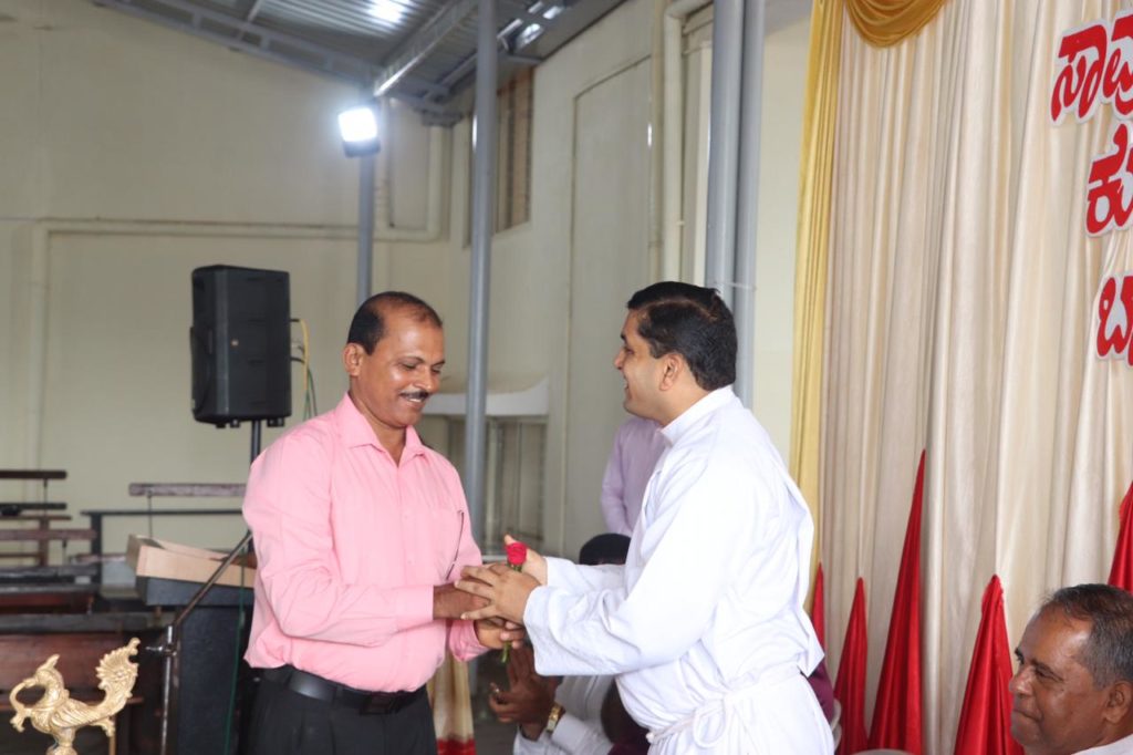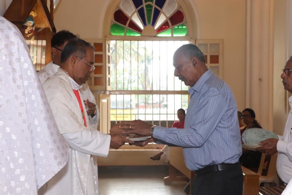 June 23, 2019: Commission for Family of Our Lady of Health Church Shirva organized ‘Fathers Day’ celebration for the first time at Don Bosco CBSE premises. The celebration began with the morning mass with all the liturgy  and choir offered by the Fathers of the parish. Rev. Fr. Baptist Menezes (Rector, Minor Seminary of Udupi Diocese Moodubelle) was the main celebrant, assisted by Rev. Fr. Derick D’Souza (Capuchin Priest) and Rev. Fr. Denis D’Sa. After mass, breakfast was served for more than 200 fathers who participated in this celebration. A formal function was also organized by the Commission for Family. Mr. Leslie Aroza (Diocese Director for Commission for Family) was the chief guest. He shared his experiences on the existing problems faced and role of a father in the family. Fr. Derick D’Souza shared the importance of the word ‘Father’ (In konkani as Bapoi/Pappa) and his responsibility in the family is more than a mother. Fr. Denis D’Sa sang a famous song written and composed by ‘Konkan Kogul Amar Wilfy Rebimbus’… Hya Sovnsaranth Ek Avoi Ek Bapoi.. A skit was played by Mr. Wilson D’Souza (Vice President, PPC), Mr. Lancy, Mr. Melwyn Aranha (18 Commission Coordinator) and Mrs. Pushpa Fernandes during this occasion. Mr. Grynal D’Mello compered the programme, Mrs. Pushpa Fernandes (Animator, Commission for Family) welcomed the gathering and Mrs. Vinitha (Secretary, Commission for Family) proposed the formal vote of thanks. Fr. Ashwin Aranha, Fr. Mahesh D’Souza, Mr. Wilson Rodrigues (member of Zilla Panchayat), Mrs Leena Machado (Secretary, PPC) were also a present during this programme.