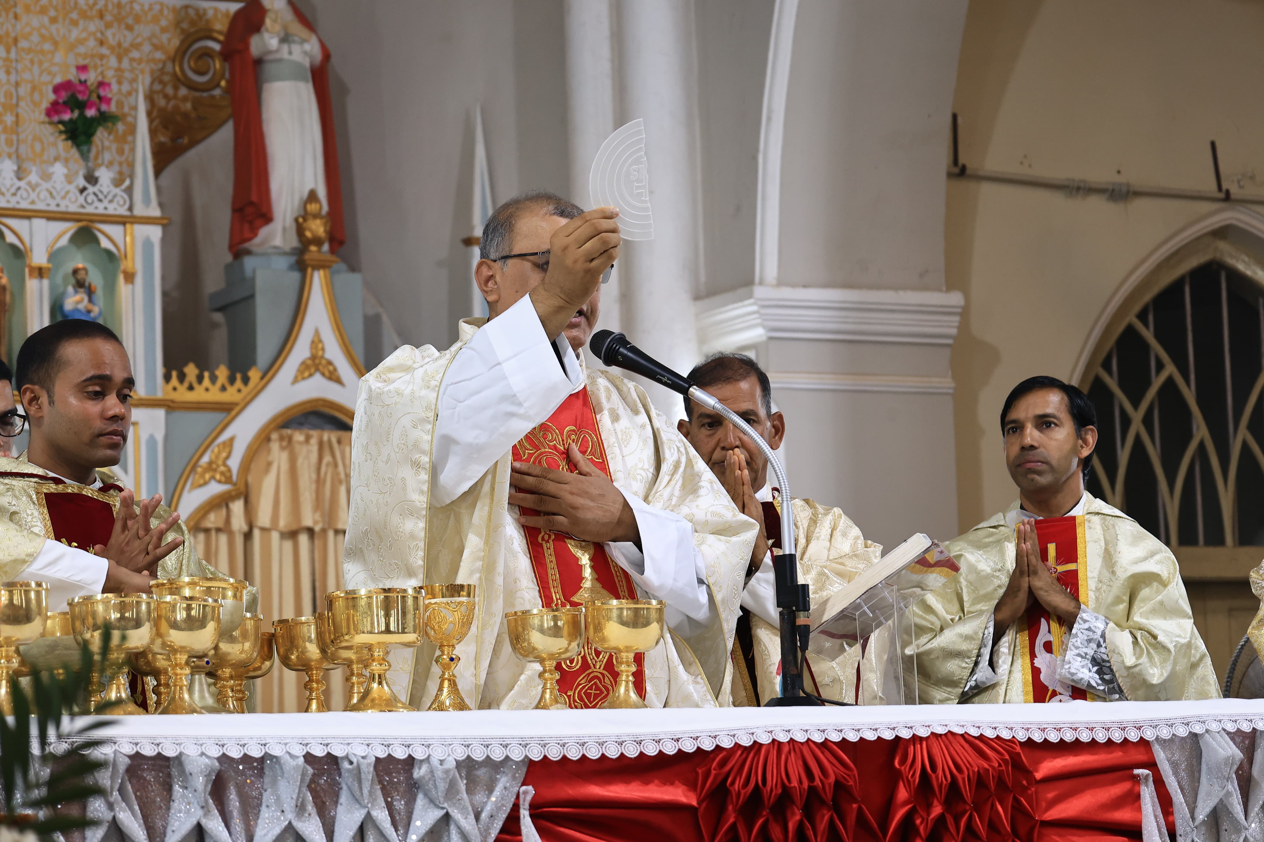 The solemn Eucharistic celebration was led by Rev. Fr. Pius James D’Souza of the Carmelite Order, who served as the Main Celebrant for the occasion. He was joined by Rev. Fr. Vinod Lobo and Rev. Fr. Sunil Monis. The celebration was further enriched by the presence and support of V. Rev. Fr. Dr. Leslie D’Souza, Rev. Fr. Rolwyn Aranha, Rev. Fr. Anil Rodrigues, and Rev. Fr. Roshan D’Souza, SDB, who concelebrated the Mass.