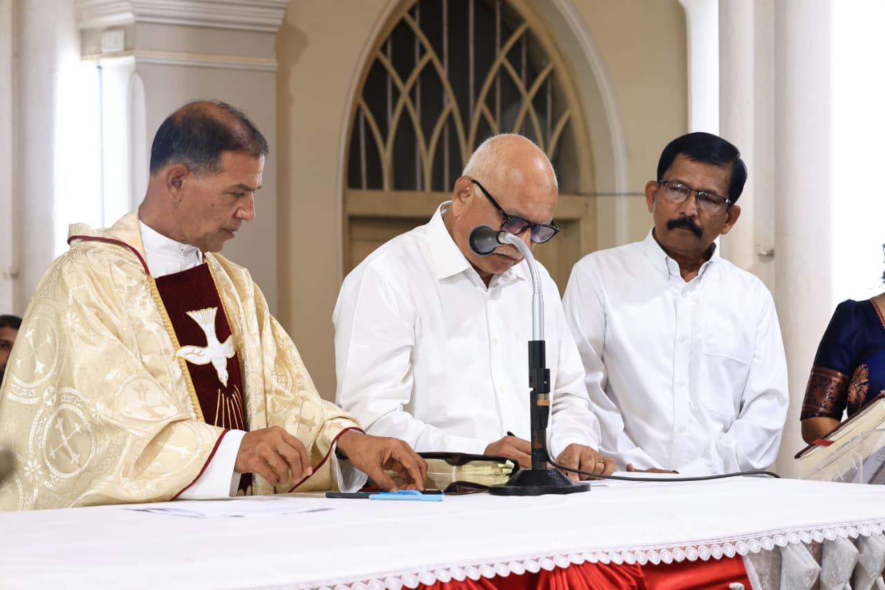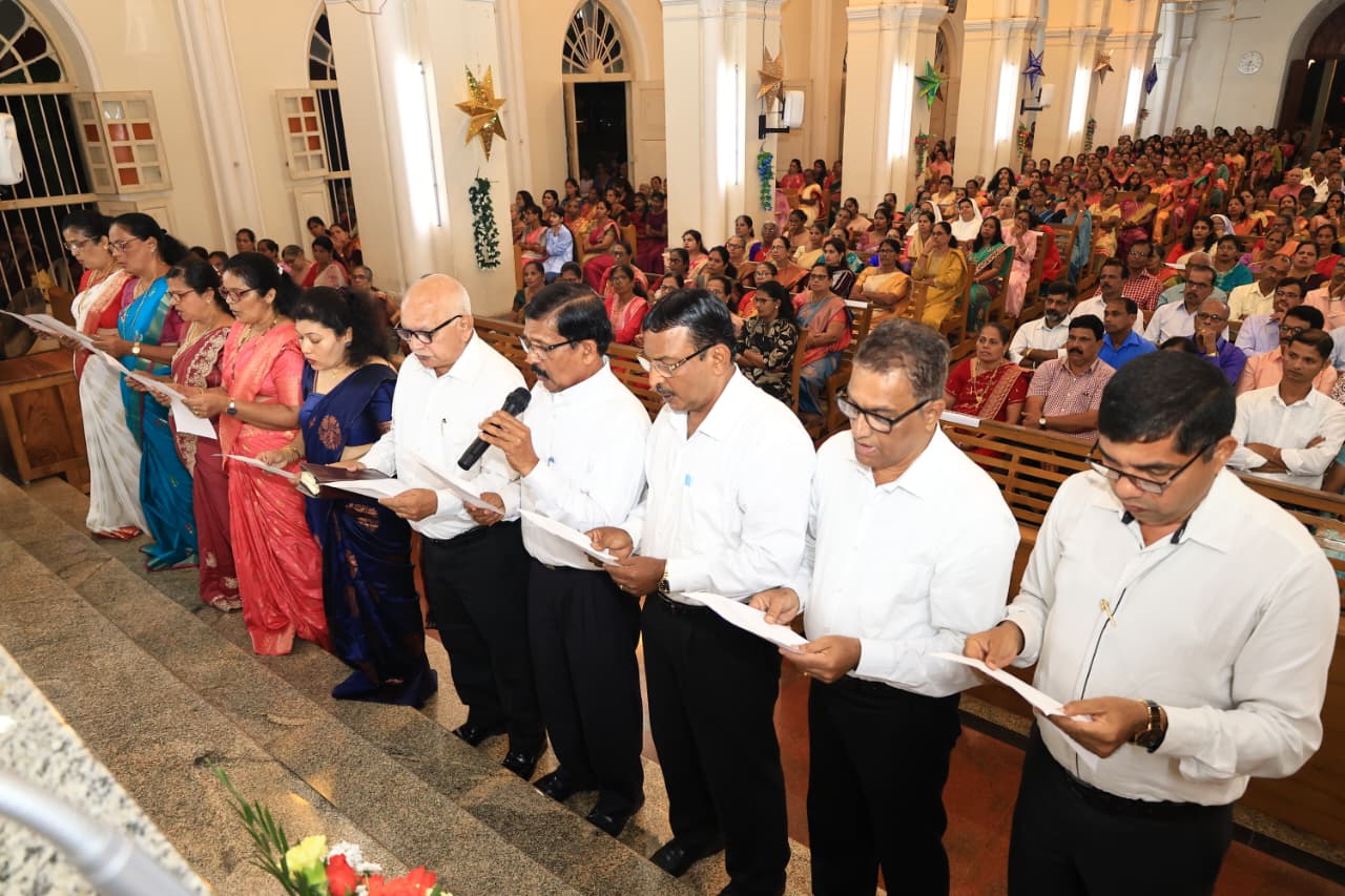 Following the Eucharistic celebration, a solemn oath-taking ceremony was held for the newly elected members of the Parish Pastoral Council for the term 2026–2029. The office bearers who took the oath included Vice President Mr. Julian Rodrigues, Secretary Mr. Gilbert Pinto, and Commission Coordinator Mrs. Shalini Corda, along with other council members.